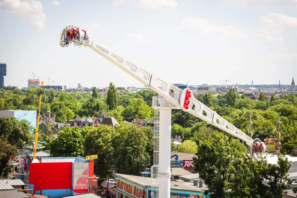 Adrenalinsuchende werden sich im Magischen Rotor wohl fühlen. Mit rasanter Fliehkraft und bis zu 82 km/h wirst du durch die Luft gedreht – damit schafft es der Rotor sogar auf Platz 4 der schnellsten Attraktionen im Wurstelprater! Wenn es dich nach der Fahrt nach noch höherer Höhe gelüstet, schau auch beim großen Bruder, dem King, vorbei.