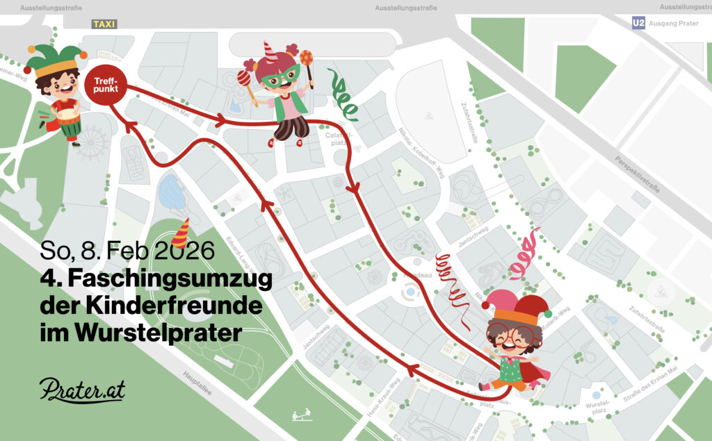 Do your children love to dress up for the carnival season? Then you absolutely have to drop by the Wurstelprater when the Wiener Kinderfreunde invite you to the 4th Carnival Parade on February 8th, 2026!