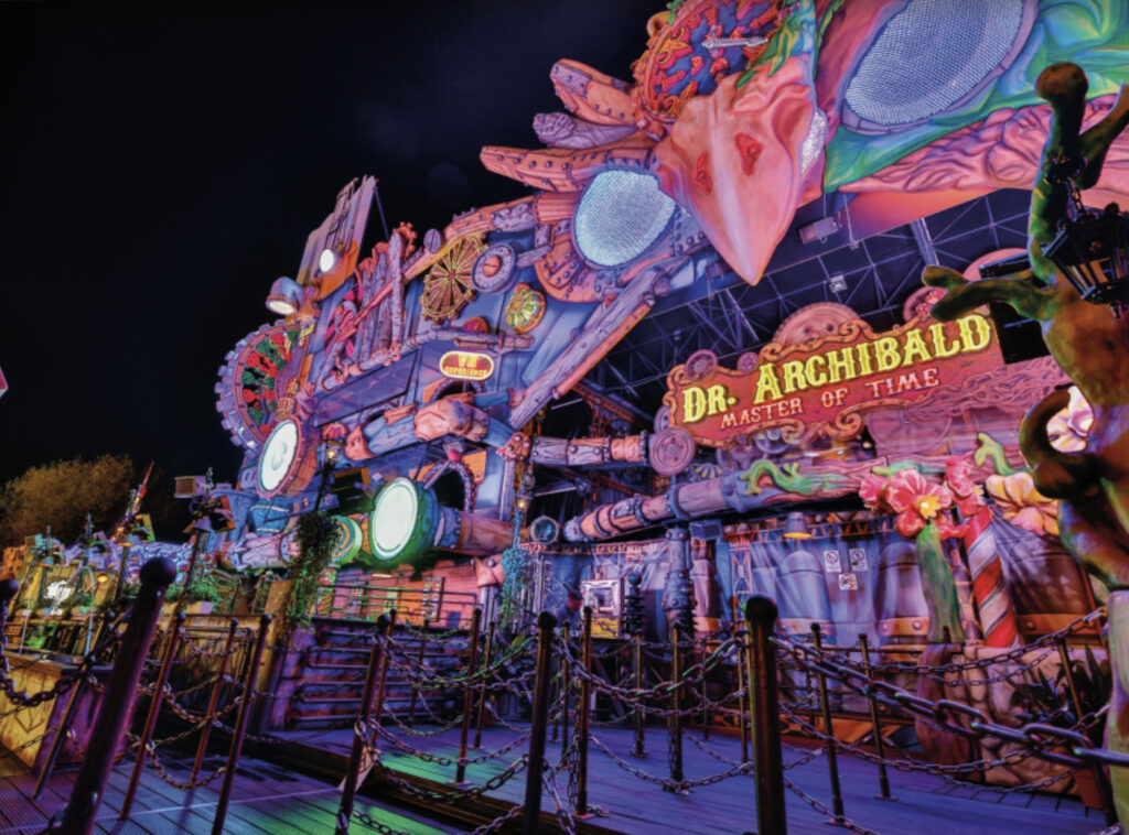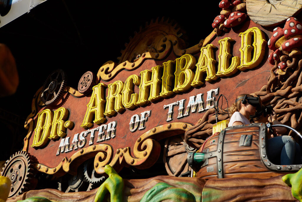 The lines between reality and fantasy blur in the VR adventure ride that visited Vienna’s Wurstelprater in 2020. Dr. Archibald – Master of Time entertains its passengers with a mix of pre- and post-show rooms, adventure courses, and a rail-guided VR track. As a visitor, you embark on a quest to find the missing Dr. Archibald, professor of history, amateur archaeologist, and inventor, using an Oculus Rift headset.