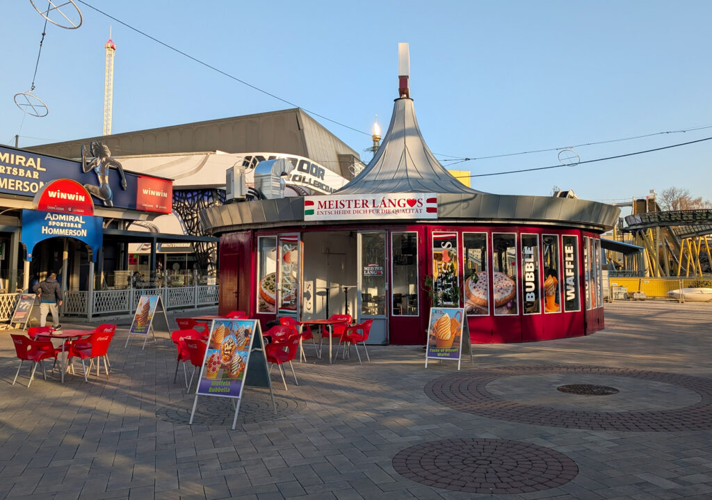 Meister Langos hat einen neuen Standort! Du kannst die beliebtesten Teigfladen im Wurstelprater nun auch sitzend, mit malerischem Blick auf das Riesenrad genießen. Neben Langos in vielen Arten und Formen, findest du auch Getränke und Bubble Waffeln im Angebot.